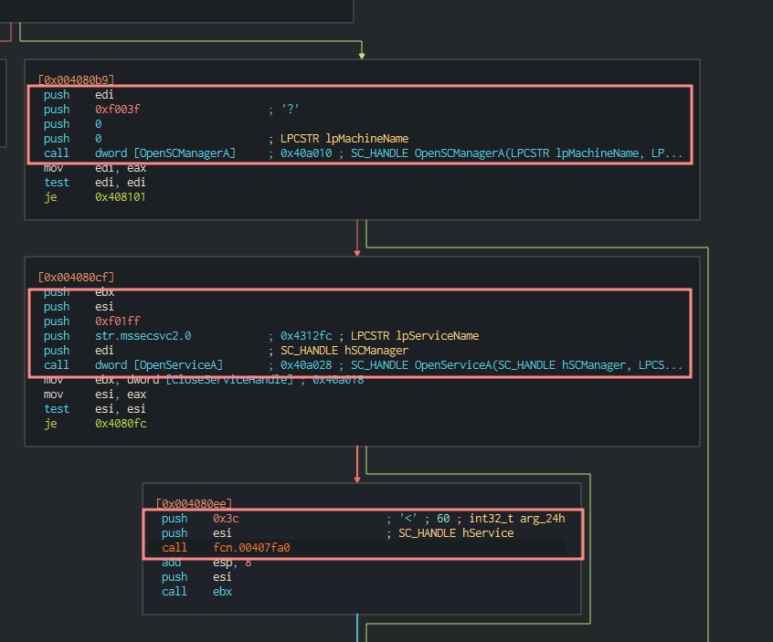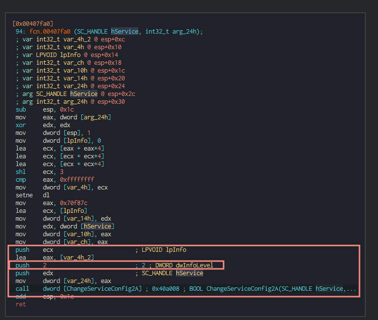 This is WannaCry’s pathway to calling ChangeServiceConfig2A.