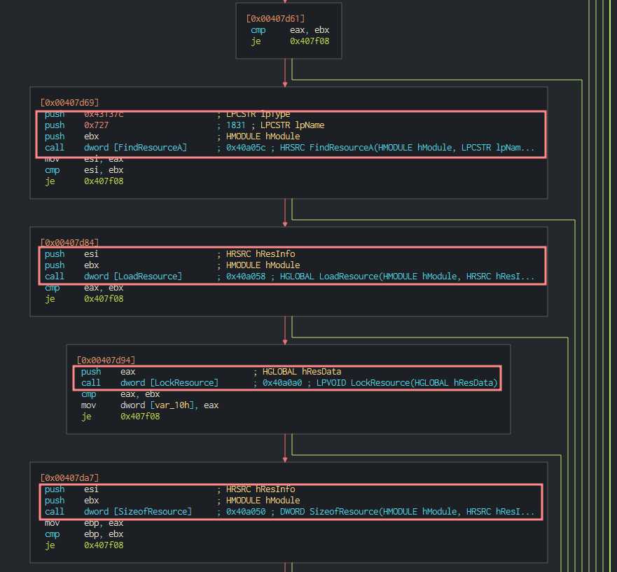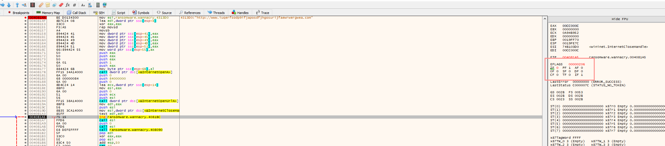 If it can, reach the destination, the program calls InternetCloseHandle to end the internet connection and returns out without malicious action