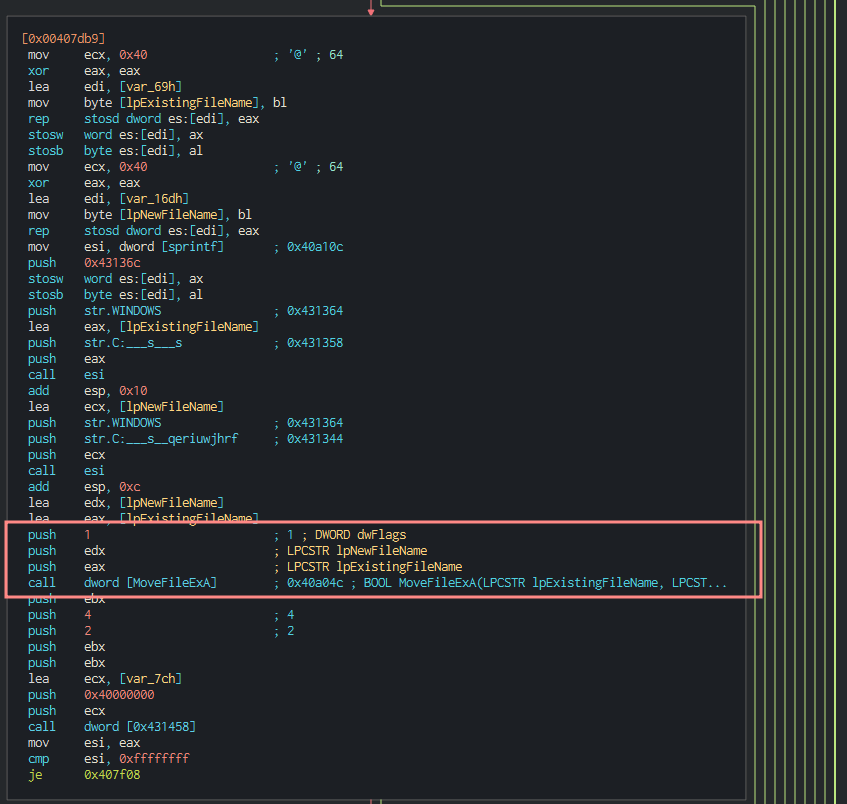 Flipping that to 1 allows for the execution of the ransomware to happen, despite INetSim being up